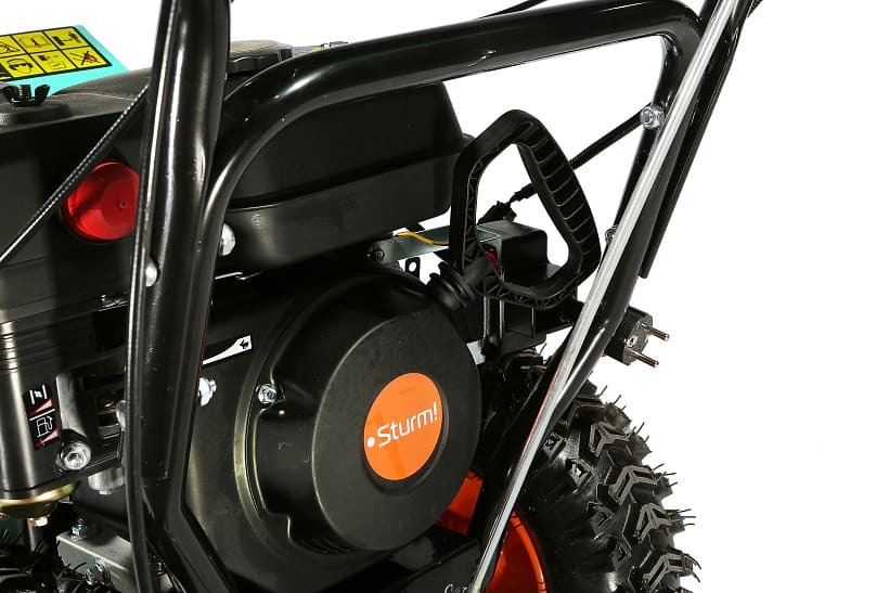 Бензиновый снегоуборщик Sturm STG7461EL применяется для очистки территории от снега. - Агрессивные шнеки диаметром 250 мм легко справляются со слежавшимся снегом и настом. - Хорошая проходимость. Большие пневматические колеса с зимним протектором для уверенного движения. - Легкий запуск. Электрический стартер позволяет запускать двигатель без физических усилий. - Удобство работы. Рычаг управления желобом снегоотбрасывателя всегда под рукой у пользователя для установки и изменения направления выброса снега. Особенности Sturm STG7461EL: - Надежное сцепление. Глубокий протектор колес обеспечивает надежное сцепление с поверхностью даже на обледенелых участках. - Защита ковша. Ограничительные башмаки устанавливают высоту ковша, защищая его от повреждений - Все под рукой. Управление работой снегоуборочной машины происходит с помощью рычагов, расположенных на консоли оператора.